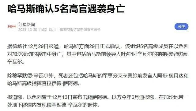 更耐人寻味的是另一边,哈马斯居然破天荒主动开口了。新上任的卡桑旅发言人头一回露脸讲话,一口气承认五位核心人物阵亡。这可不是小角色——阿布·奥贝达,蒙面二十年的标志性人物,真名叫HudhaifaSamirAbdallahal-Kahlout,8月在加沙城空袭里没了;穆罕默德·辛瓦尔,叶海亚·辛瓦尔的亲弟弟,5月在汗尤尼斯那家欧洲医院地下的指挥所被精准炸掉;还有拉法旅的指挥官穆罕默德·沙巴纳,也是5月挂的;拉伊德·萨阿德,12月13日在加沙城一辆车里连人带座驾被端了,当时车上四个全军覆没,据说他是去年10月7日突袭行动的关键策划人之一;最后一个哈卡姆·阿尔-伊萨,6月在萨布拉小区一次行动中阵亡。这些人随便拎出一个,都是能指挥打巷战、管武器输送、对外放话的实权派。